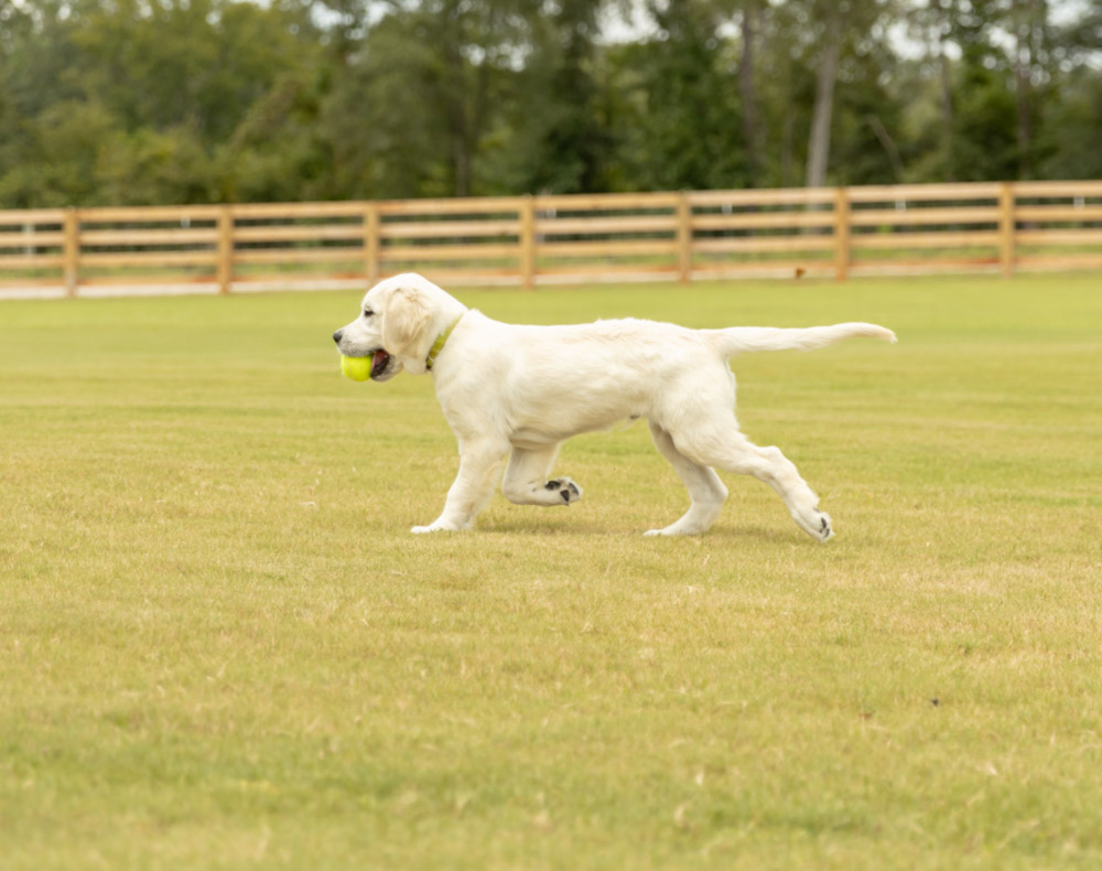 That adorable little twirl before curling up to snooze, the precious little zoomies where their paws tumble over each other, and the way they look up at you with those big, trusting eyes—it’s all part of the magic of bringing home an English Cream Golden Retriever. Until they’re ready to become part of your family, they’re nurtured in our state-of-the-art facility, thoughtfully designed for their comfort, well-being, and happiness.